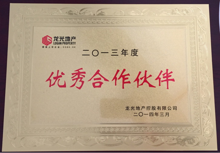 龍光地產(chǎn)控股有限公司2013年度優(yōu)秀合作伙伴 |