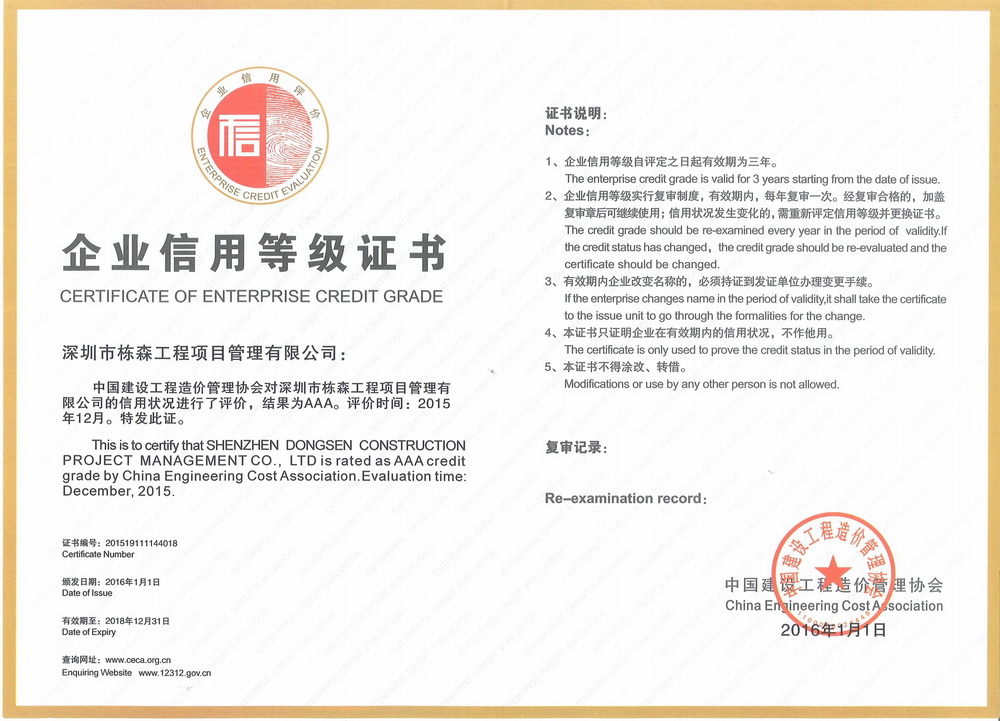中國建設(shè)工程造價(jià)管理協(xié)會企業(yè)信用等級AAA |